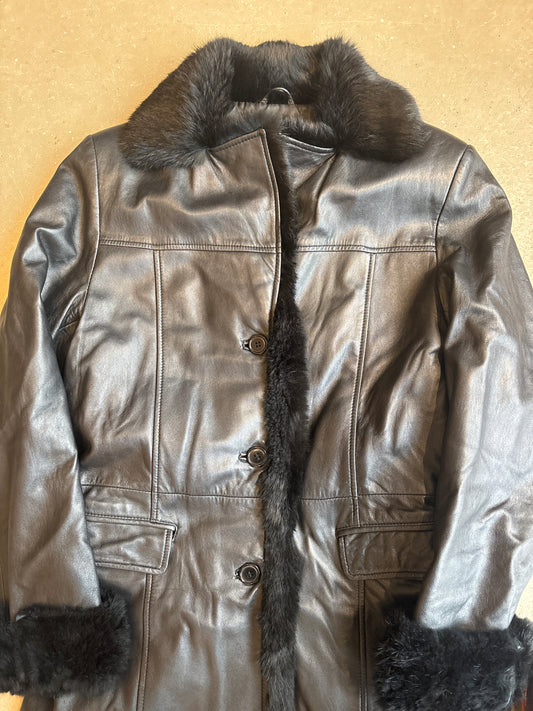 Vera Pelle Jacket Black Faux Fur Collar
