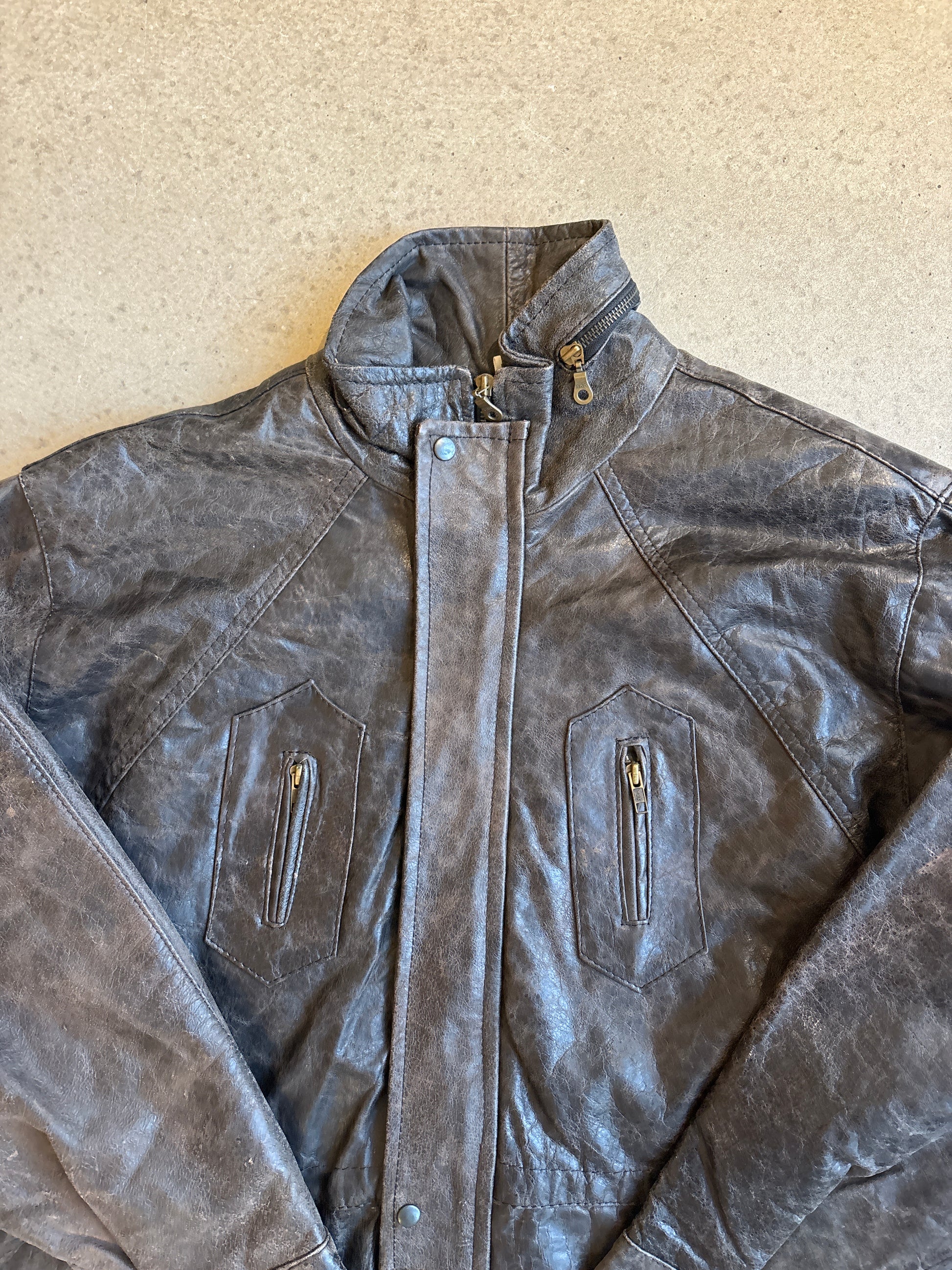 Vintage Brown Cracked Leather Jacket M