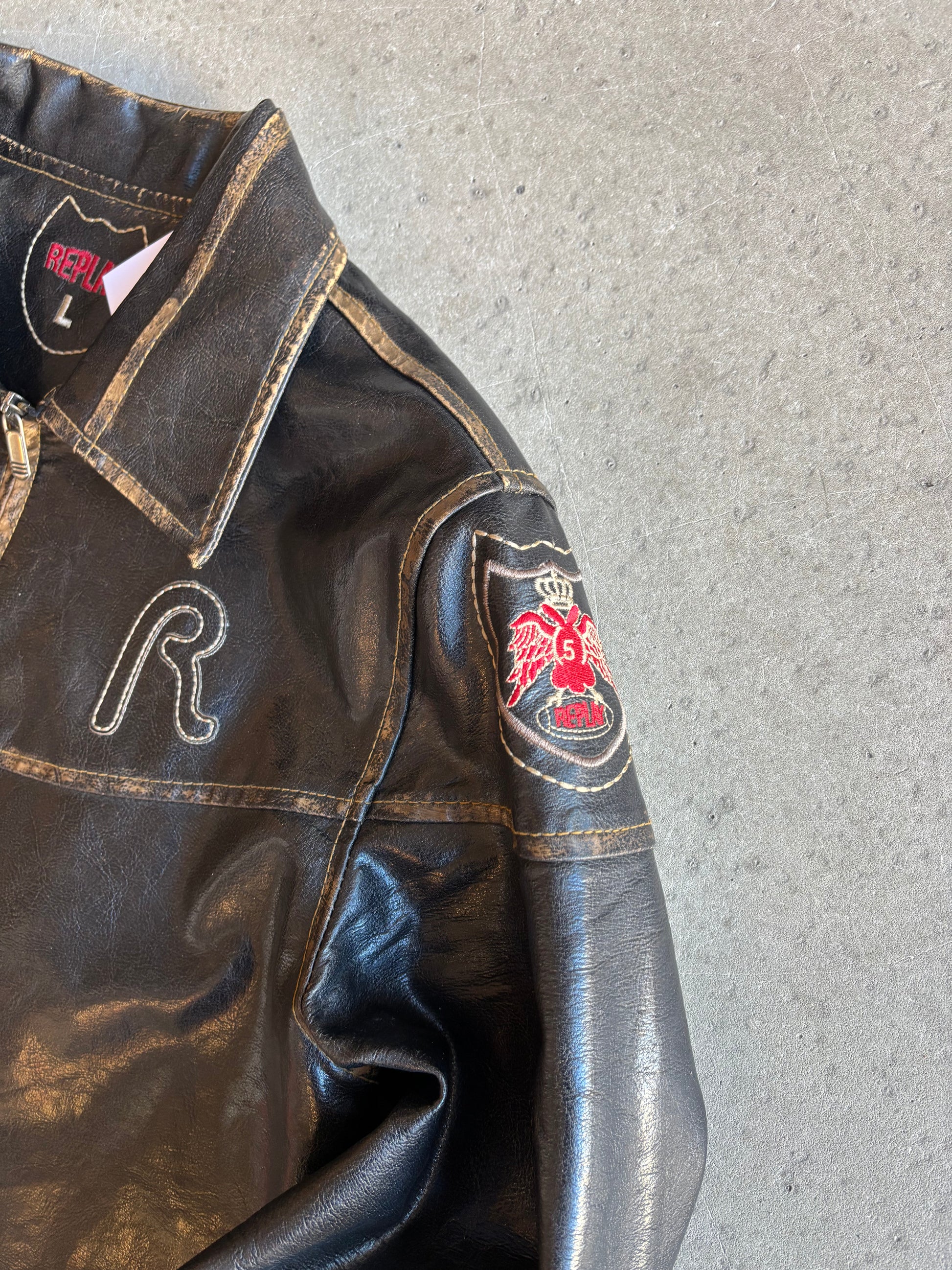 Vintage Replay Lined Leather Jacket Black Large